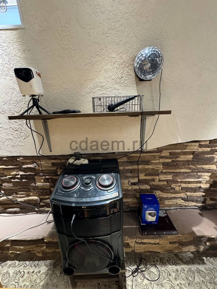 *На первом этаже зона Сауны, кинотеатра и караоке. Также гостиный зал со столом, система караоке, проектор, камин, множество игр и книг. Большой раскладной диван. Есть дополнительные столы, стулья, табуретки. Светомузыка.